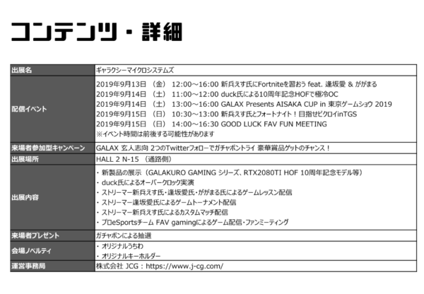 GALAX TGS2019 告知ページ: http://www.galax.com/jp/tgs-2019-jp/